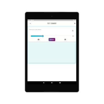 Text Summary è un'applicazione per Android progettata per semplificare il processo di sintesi dei testi. Grazie a potenti algoritmi di intelligenza artificiale, l'app è in grado di estrarre le informazioni più rilevanti da libri, articoli e documenti, permettendo agli utenti di risparmiare tempo. Gli utenti possono personalizzare la lunghezza del riassunto in base alle proprie esigenze, rendendo facile la lettura e la comprensione del contenuto. L'interfaccia intuitiva rende l'app utilizzabile ovunque e in qualsiasi momento.